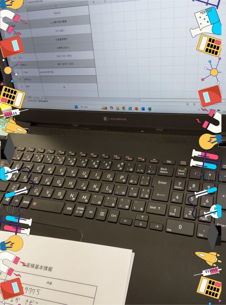 事業所のPCにはテンキーが付いていたので、数字の入力(郵便番号や電話番号など)はテンキーを使う練習をしました。