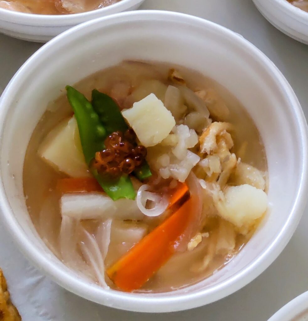 今週は、塩漬けの魚と根菜を煮込んだ北海道の冬の定番。 驚いたのは、その豪華なトッピング!なんと「いくら」まで添えられています。澄んだ出汁にいくらの彩りが映え、見た目にも華やかな、まさに「プロのこだわり」が光る一杯でした。