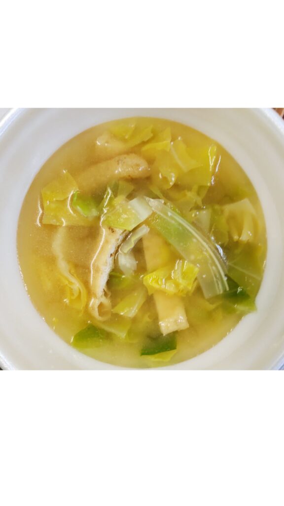 油揚げがたっぷりお出汁を吸って、キャベツの鮮やかな緑色とのコントラストも綺麗ですね。