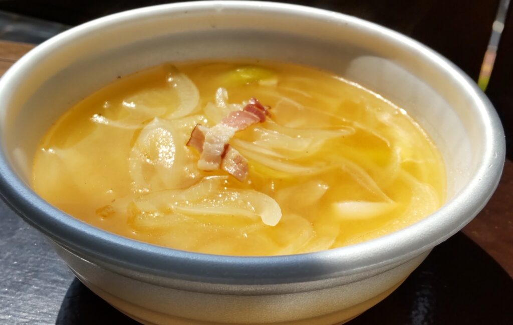 まずは、今回のランチメニューのご紹介です。 本日のメインは、「玉ねぎとベーコンの味噌汁」。