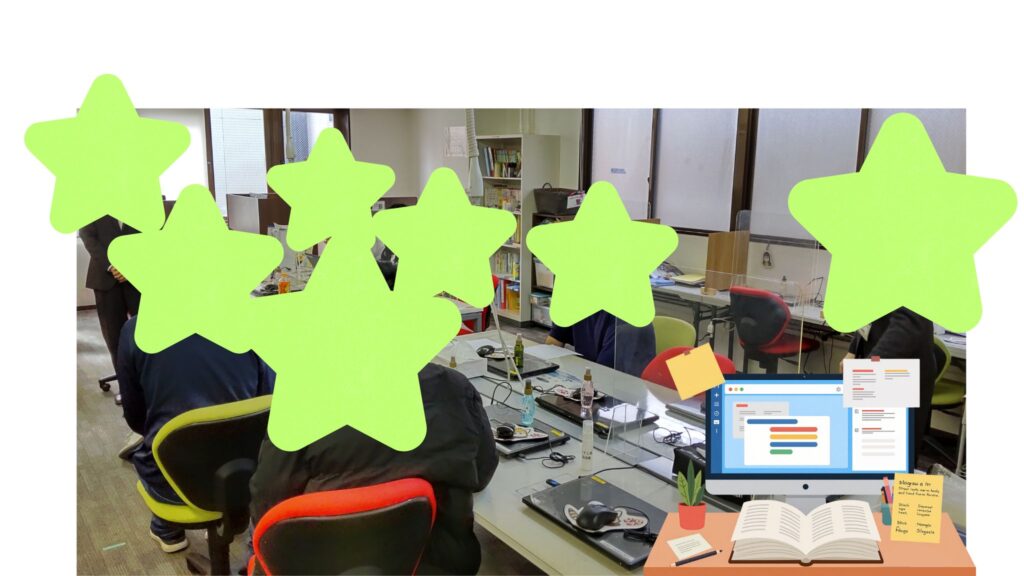 就職活動は、時にストレスを感じるものです。だからこそ、当事業所では「楽しみながら、いつの間にか力(スキル)がついている」ような環境づくりを大切にしています。
