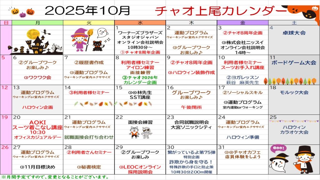 チャオ上尾10月の予定を発表いたします。