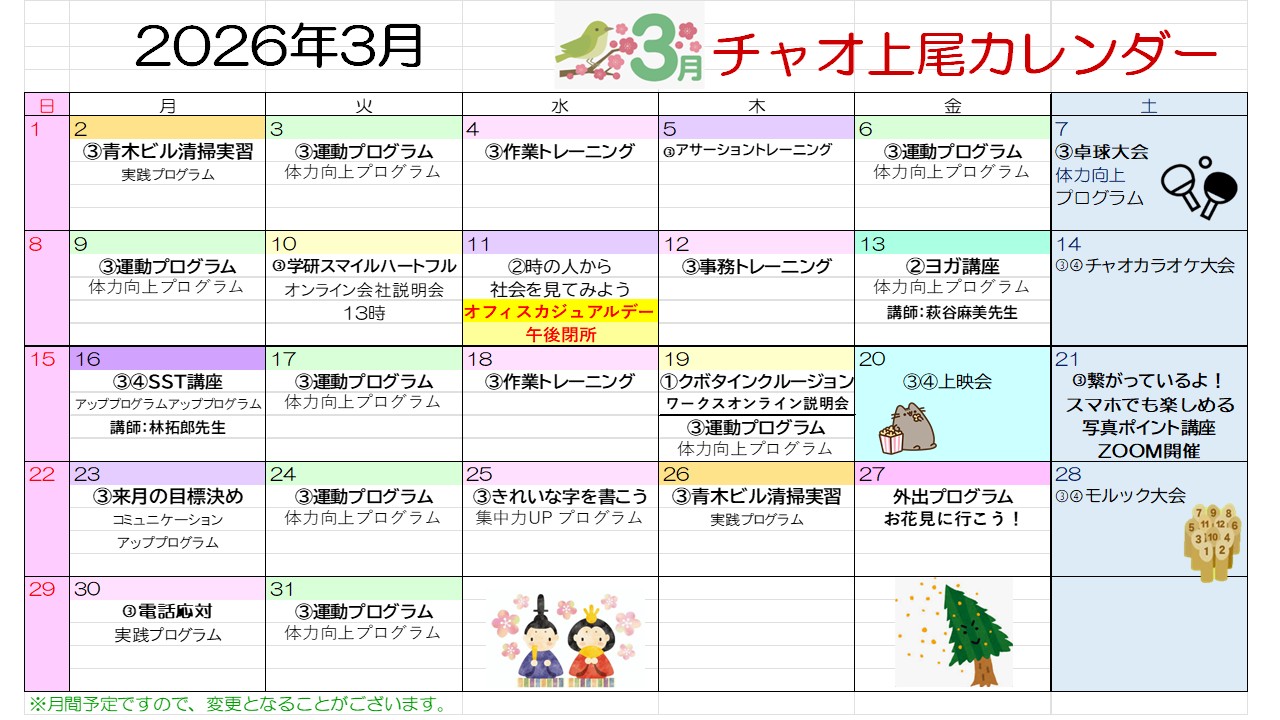 3月カレンダー